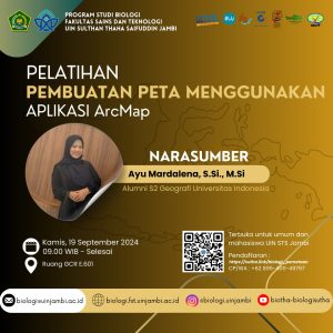 Jambi, 19/09/2024 – Program studi Biologi UIN STS Jambi kembali melanjutkan penyelenggaraakn pembinaan akademik kepada mahasiswa Prodi Biologi FST melalui pelatihan peta yang dilaksanakan di Gedung GCR E.601 Lantai 6 (19/09). Pelatihan pembuatan peta ini mengundang narasumber Ayu Mardalena, M.Si selaku dosen SaIG UIN STS Jambi. Pada pelatihan pemetaan hari ini, partisipan diajak mengenal lebih lanjut mengenai aplikasi pemetaan berupa ArcMap dan Google Earth Pro.
